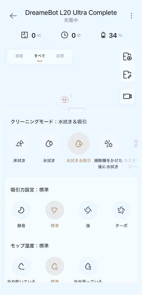 この辺りはスケジューリングと連携させることができるので、毎回水拭きは不要というパターンの掃除にも対応しています。