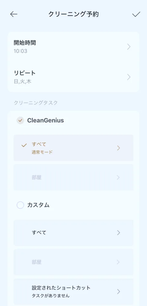 ・掃除のスケジューリング(部屋ごと、水拭きの有無)