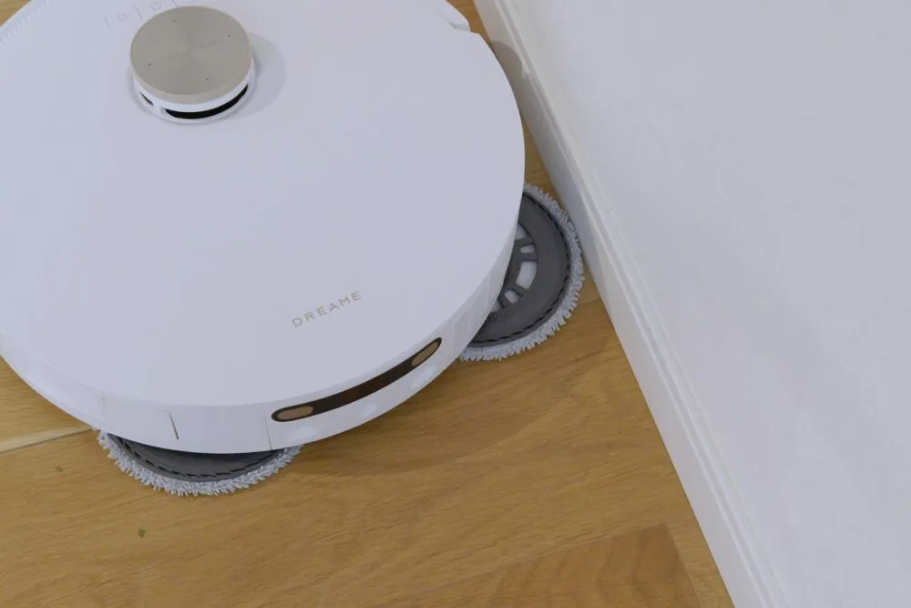 Dreame L20 Ultra Completeは右側のモップがこちらのように、外に迫り出して壁際をギリギリまでモップがけしてくてるので、清掃残しが少なくなります。
