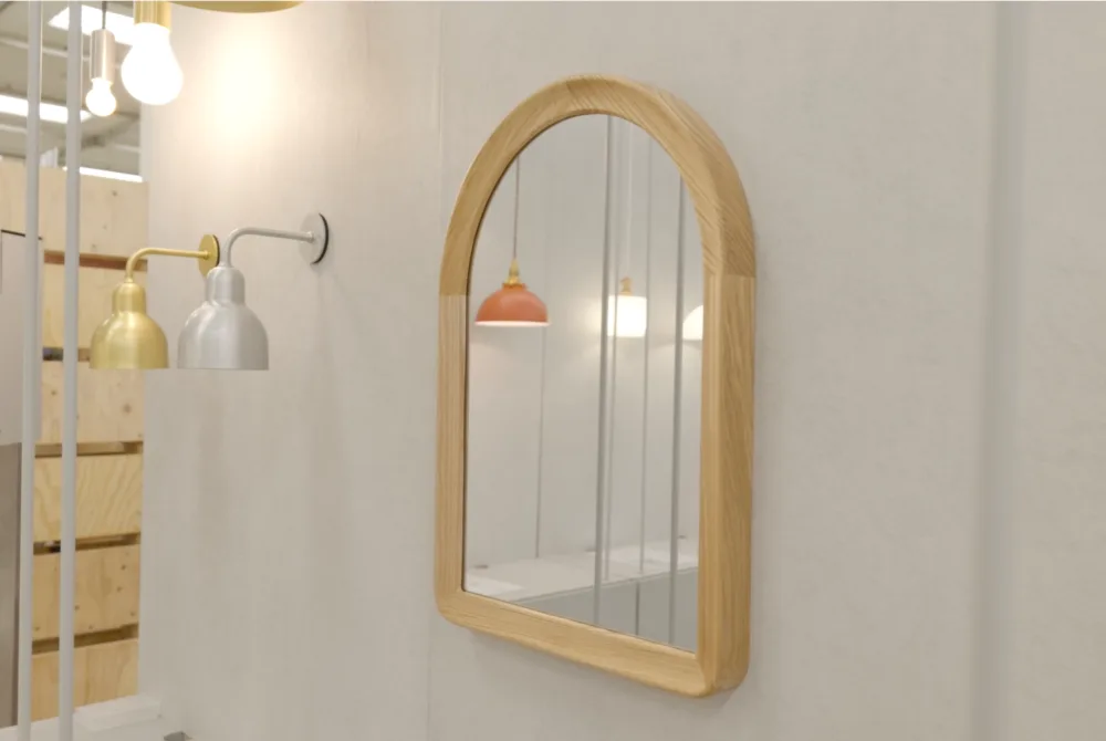 「MOI wall mirror arch」は、窓のようなアーチ型デザインの壁掛けミラー。MOIの他アイテムより一回り大きいので、顔周りが全体的に映り込みます。